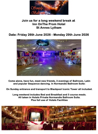 Your weekend also includes entrance and transport to the iconic Blackpool Tower Ballroom on Sunday an unforgettable experience for every dancer.